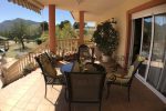 Eveneens heeft het een prachtige tuin met palmbomen, diverse fruitbomen, olijfbomen en dennenbomen die voorzien zijn van een irrigatie systeem. Verder een zeer groot uitnodigend zwembad met kinder gedeelte, een bijgebouw met overdekte pergola en een keuken, een ingebouwde barbecue ruimte en hout oven.