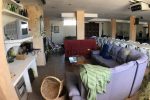 Het landhuis is verdeeld in 3 gedeeltes, waarin 7 slaapkamers waarvan 4 direct toegang hebben via de schuifdeuren naar het overdekte terras en twee familie badkamers zijn verdeeld. Via de inwendige trap komen we op de begane grond van het huis die is ontworpen om grote groepen mensen te verzamelen, het is 1 grote open ruimte die momenteel gebruikt word als familie feestzaal. We vinden er onder andere een open haard met daaromheen een geïmproviseerde woonkamer, opbergkast, badkamer met douche en wc, slaapruimte.